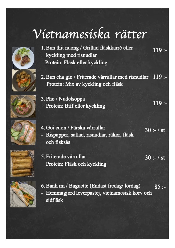 Vi erbjuder även Catering, maila till oss på info@thudao.se